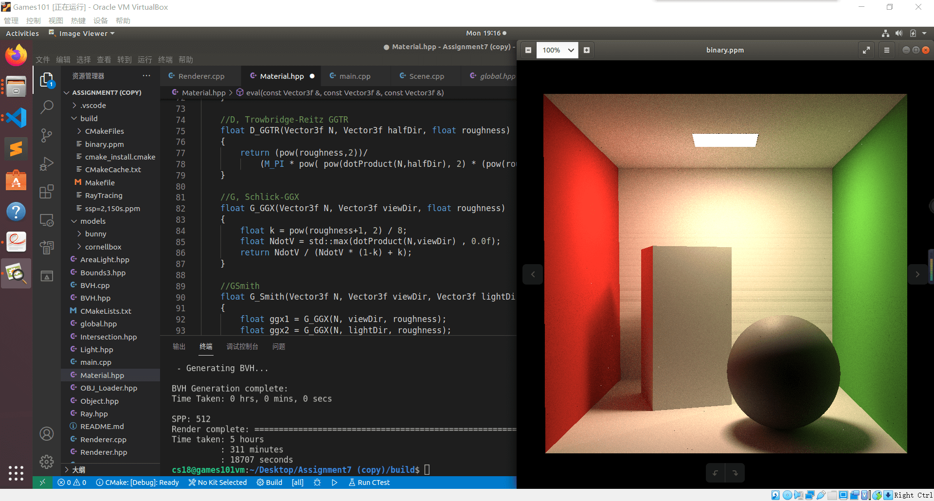 跟随 GAMES101 的课程进度,独立完成了BVH和蒙特卡洛微表面的实现,后通过 Peter Shirely 手写光追系列教程完成了整个渲染器的搭建,并在此基础上实现了 Tone Mapping 和多线程加速,未来还有计划加入更多诸如模型 IO、包围盒优化等技术点的实现