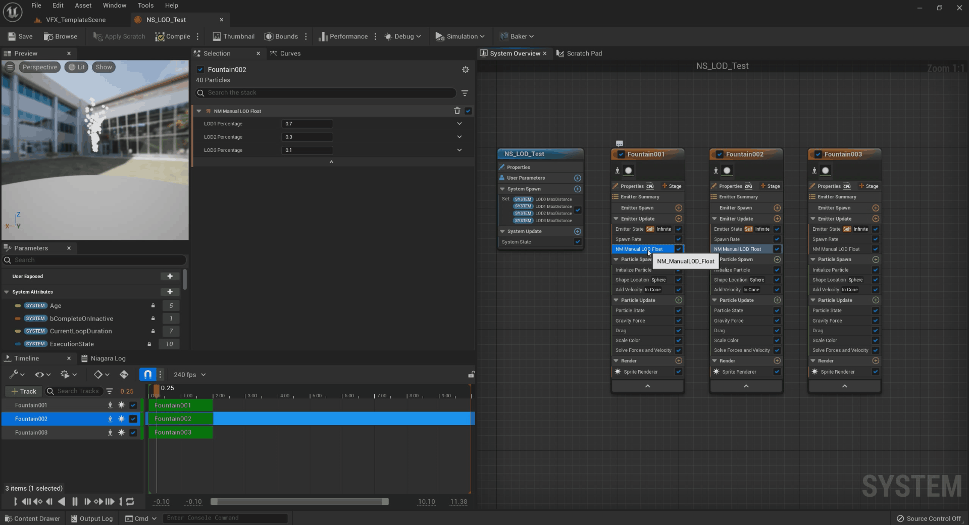 项目由腾讯IEG引擎图形学远程课题实践活动发起。通过该项目初步对深度学习和强化学习相关概念进行了一定程度的学习和探索,了解到了特效制作过程中的一些性能评判标准,也借此尝试了部分理论的建模,并在此过程中从零到一学习了UE5插件开发的相关知识,最后成功实现了如图所示的Niagara批量添加LOD模块的功能(Slate编写等)